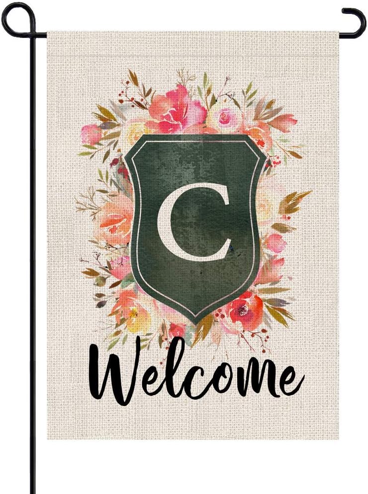 Amazon Com Party Buzz Monogram Letter C Burlap Garden Flag Floral Initial Double Sided 12 5 X 18 Inch Small