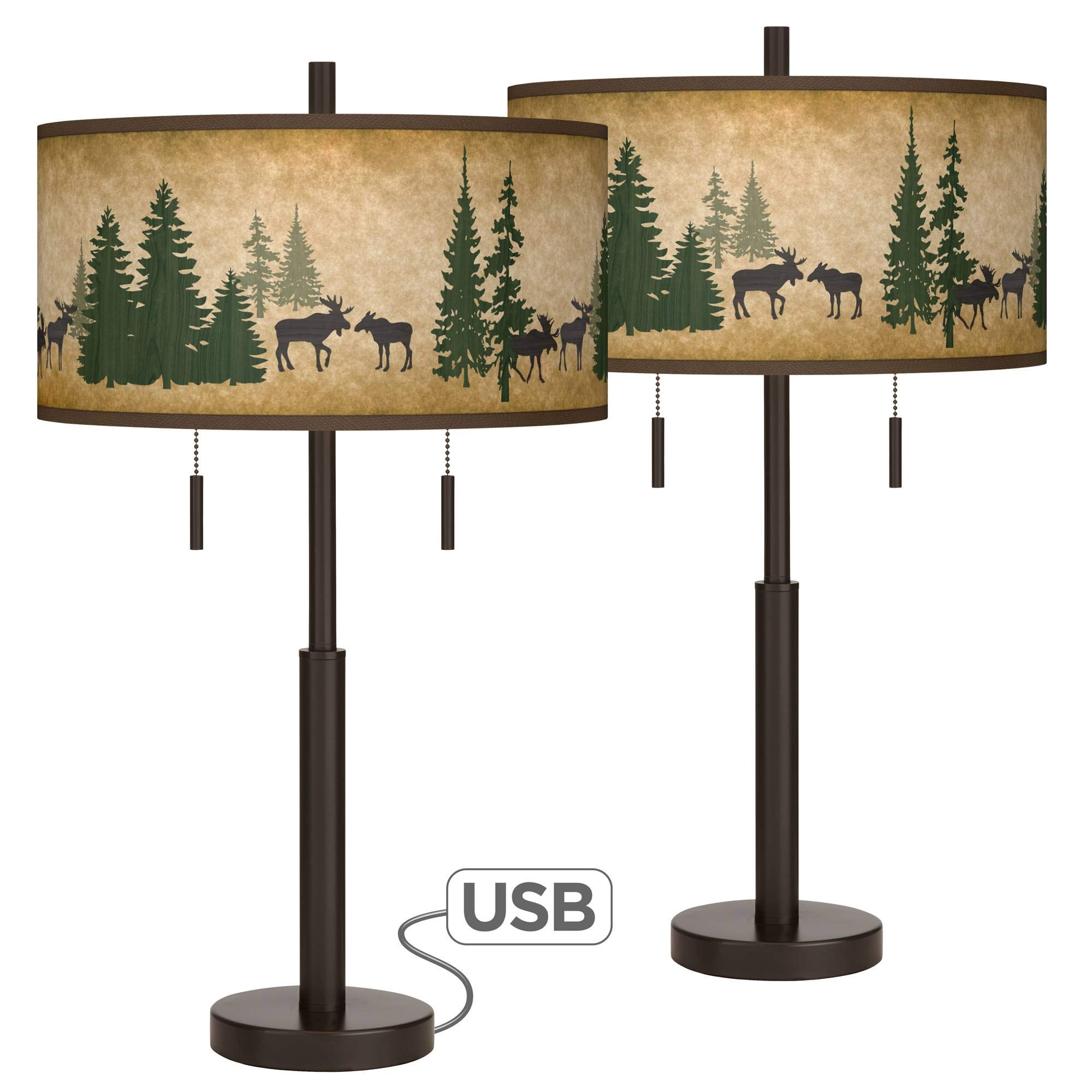 Moose Lodge Robbie Bronze Usb Table Lamps Set Of 2 Giclee Glow