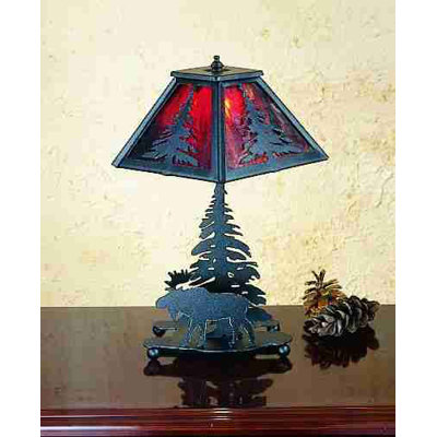 Metal Art Glass Moose Table Lamp Findley Lake Trading Co