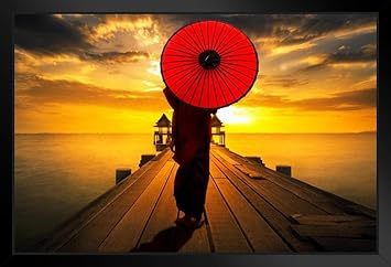 Amazon Com Strolling On The Wooden Bridge At Sunset Photo Art
