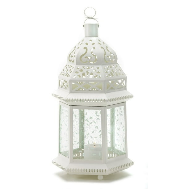 Moroccan Lantern Candle Holder White Metal Moroccan Style Tea