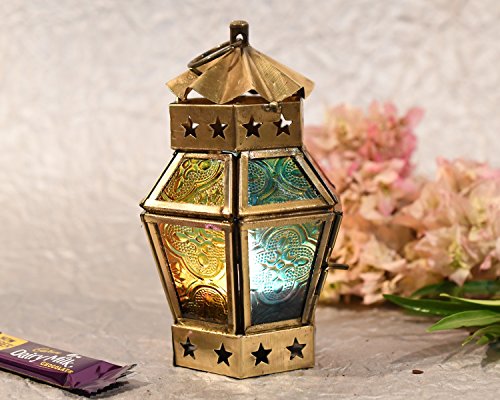 Moroccan Style Lantern Candle Holder With Coloured Glass Metal
