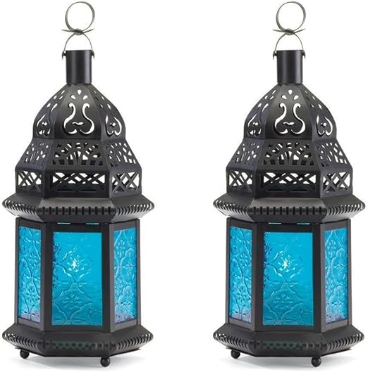 Amazon Com Tom Co Gifts Decor Moroccan Lantern Blue Glass