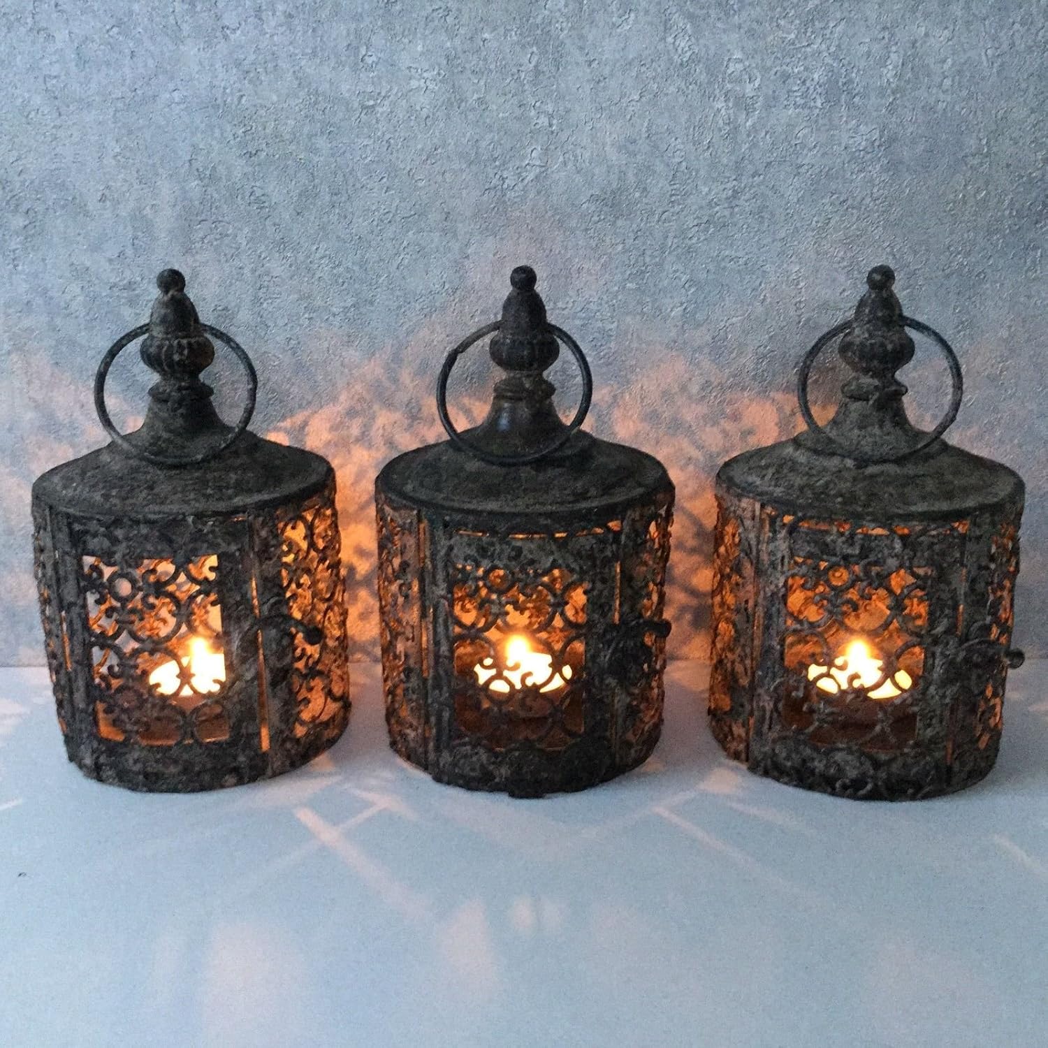 Set 3 Antique Vintage Style Moroccan Lantern Candle Holder Tea