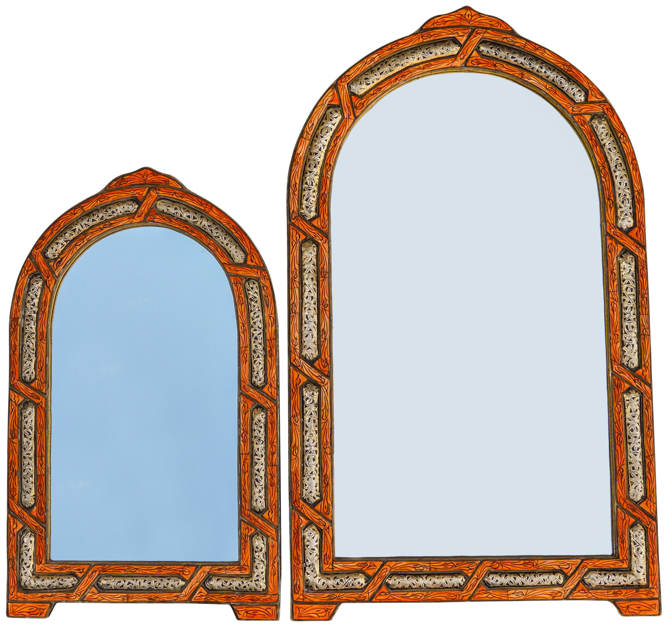 Orange Brass Inlay Moroccan Mirrors S 2 Chairish