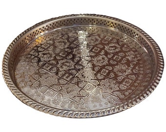 Moroccan Tea Tray Serving Cocktail Silver Handmade Fez Large Round