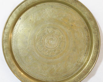 Large Brass Tray 15 Moorish African Moroccan Round Tray Hand