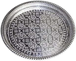 Moroccan Metal Round Silver Serving Tray Afet O 31cm Large