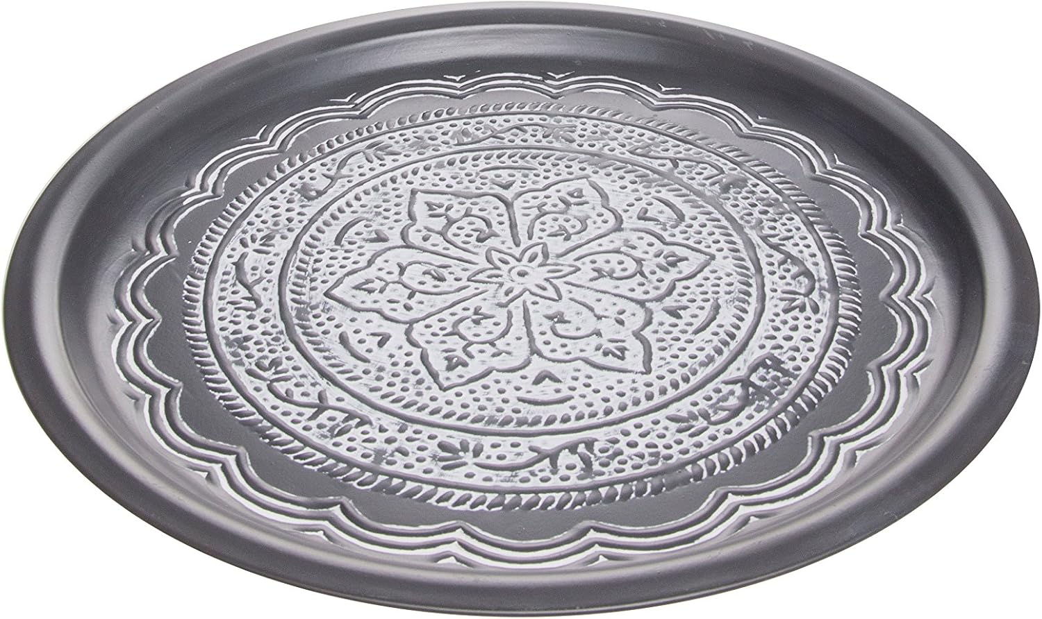 Moroccan Metal Round Silver Serving Tray Fidan O 34cm Large