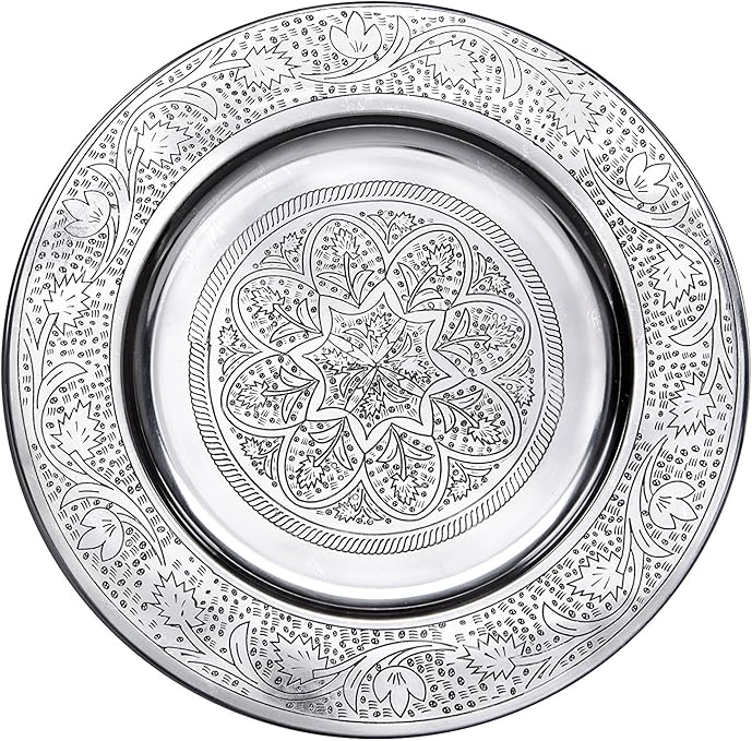 Vintage Styled Handmade Moroccan Silver Plated Engraved Round Tea