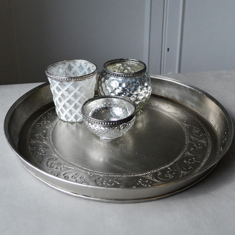 Moroccan Tray In Silver In Aluminium Oriental Round Tray