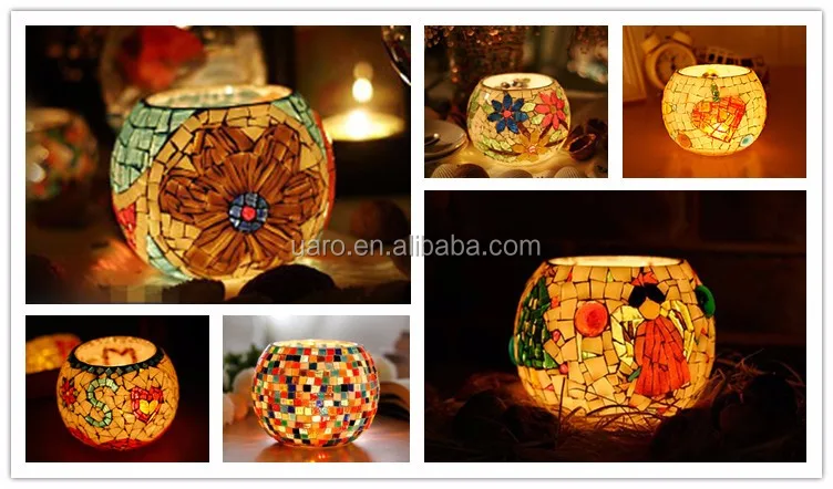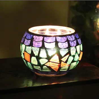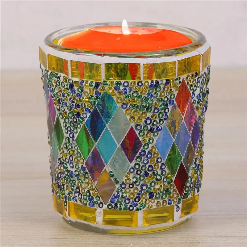 Colorful Mosaic Glass Candle Holder Romantic Ornaments Gift Diy
