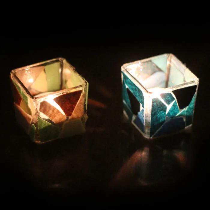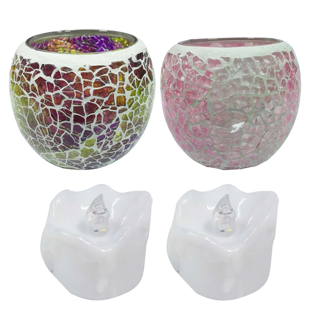 2 Sets Colored Mosaic Glass Tea Light Candle Holder With Led