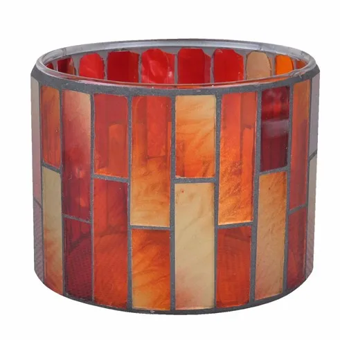 Orange Yellow And Red Gem Mosaic Candle Holder With Tan Grout