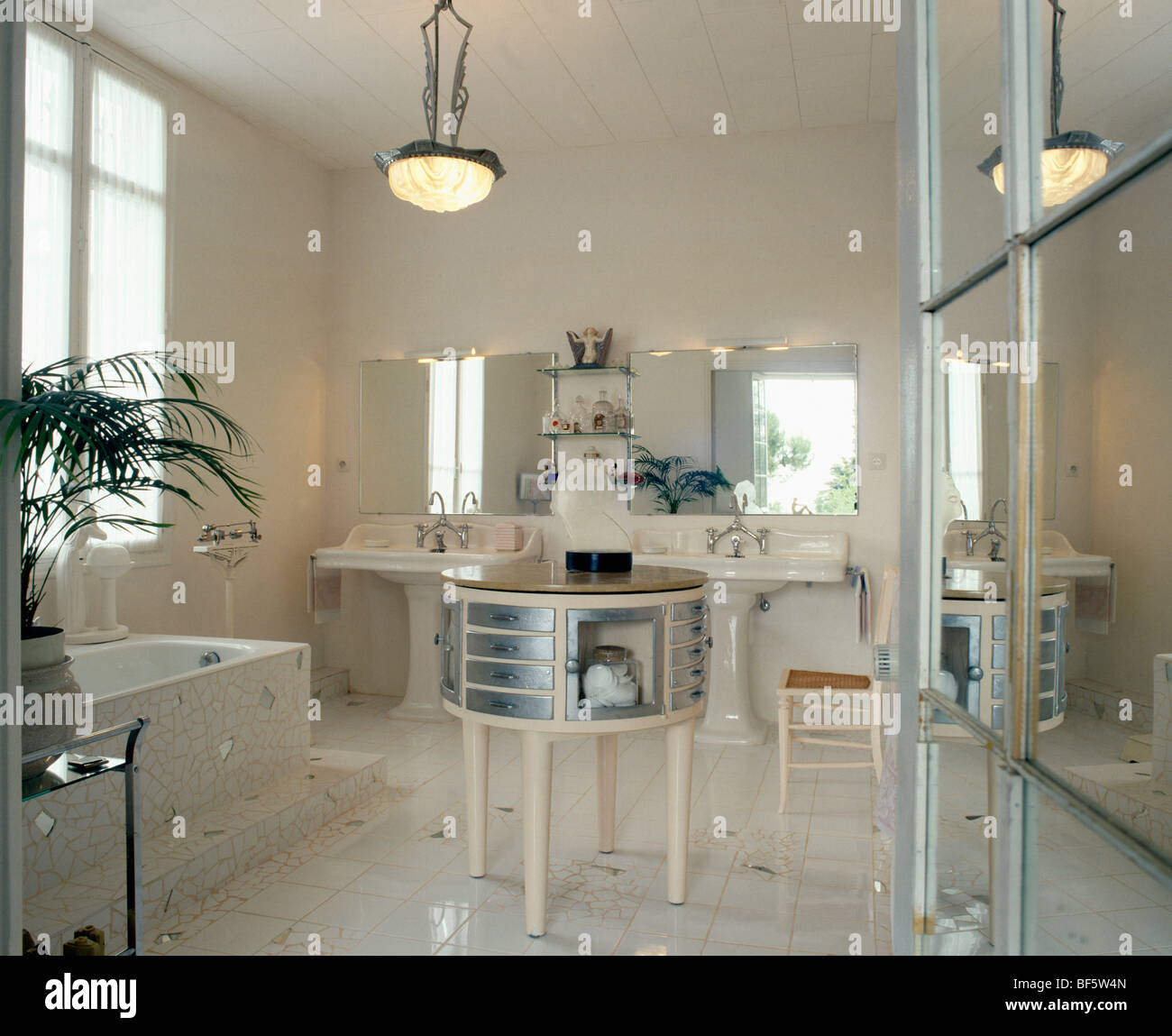 White And Mirror Mosaic Floor And Bath Surround In Thirties Style