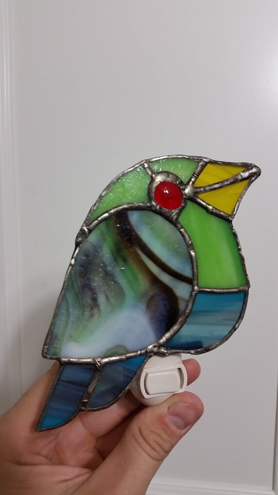 Blue Fat Bird Night Light 1 Light Lovely Tiffany Stained Glass