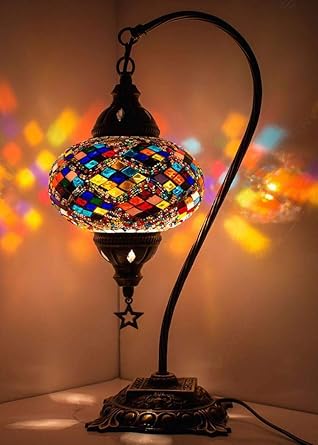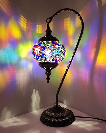 Marrakech Swan Neck Turkish Table Lamp Handmade Mosaic Glass Desk