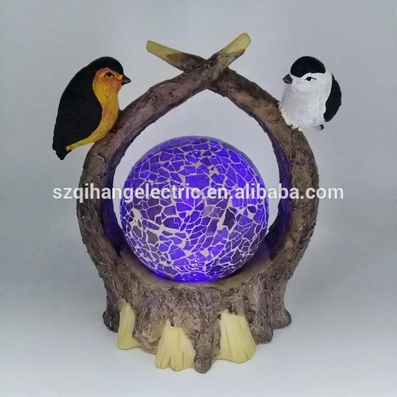 Battery Operated Led Polyresin Bird Craft With Mosaic Glass Ball