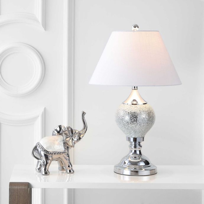 Mosaic Mirror Table Lamp In Silver And White White Lifestyle