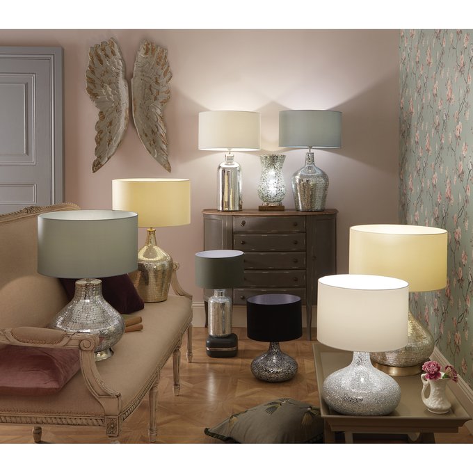 Silver Table Lamp Shade 39 Cms Shiny Crackle Mosaic Mirror
