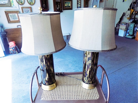 Ames Era Mid Century Pair Of Mosaic Mirror Table Lamps With Etsy