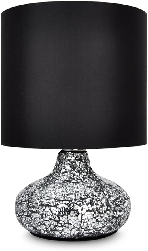 Modern Crackle Glass Mosaic Mirror Effect Padded Base Table Lamp