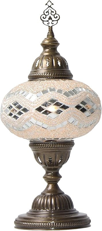 Buy Turkish Mosaic Table Lamp Of White Colour With Mirrors 35 Cm