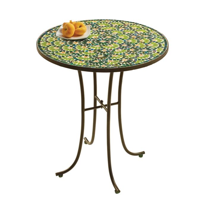 Flower Mosaic 14 Inch All Weather Side Table In Green Bed Bath