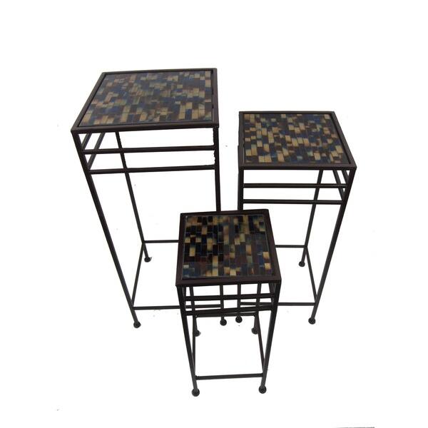 Set Of 3 Lovely Brava Tall Square Mosaic Plant Stands Bargain