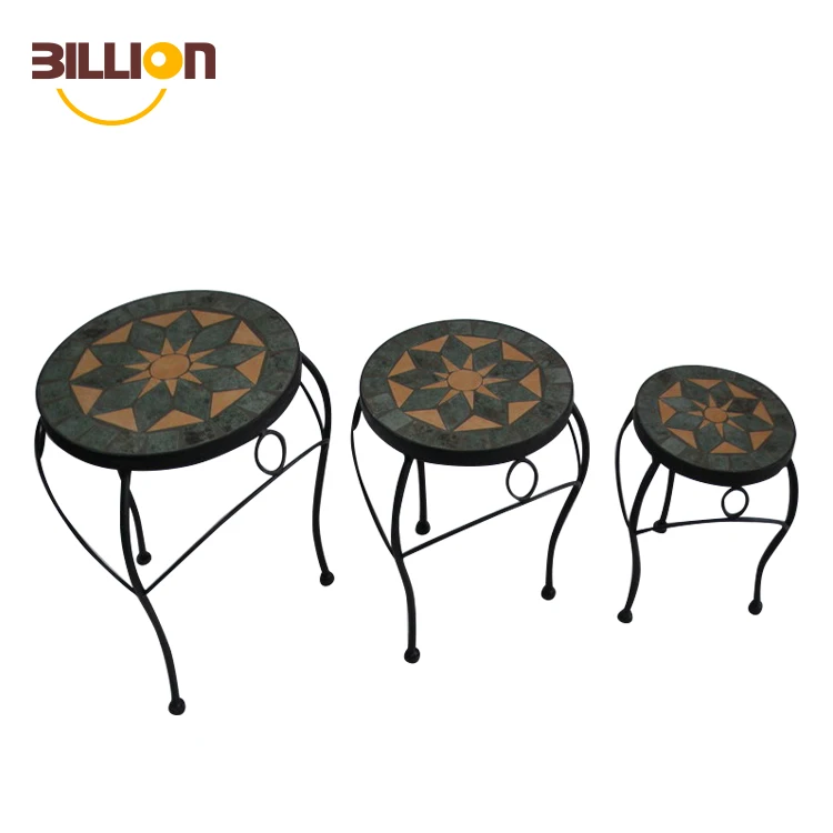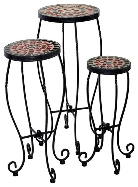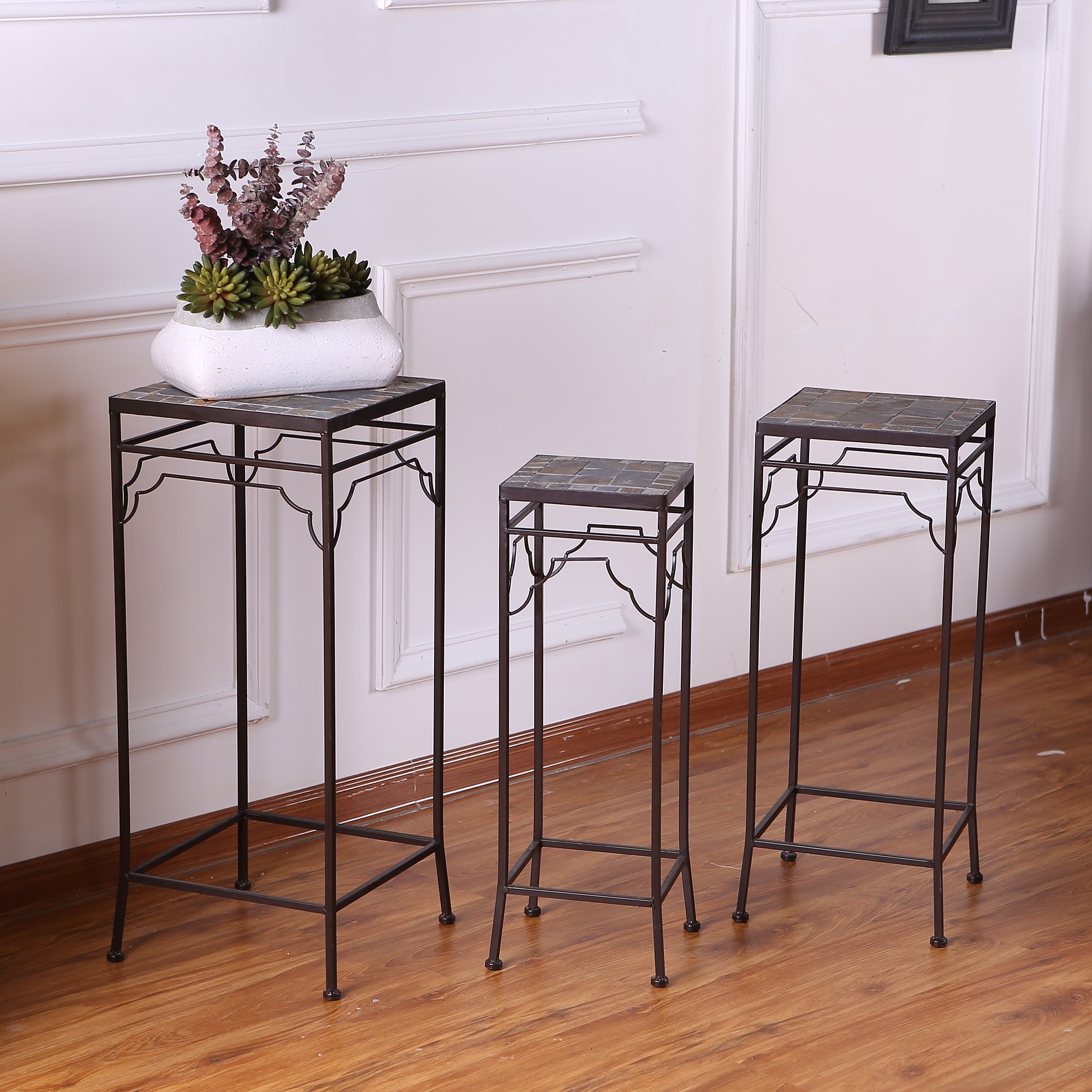 Iron Plant Stands Set Of 3 Mosaic Tile Top Indoor Outdoor Rustic