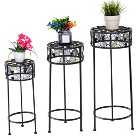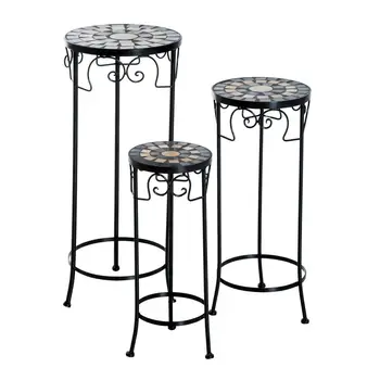 Plant Stands Set Of 3 Mosaic Round Garden Patio Plant Stands