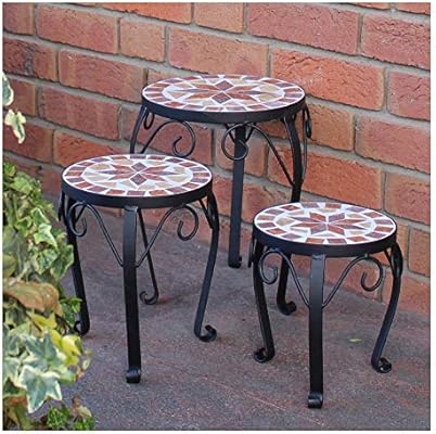 Set Of 3 Low Plant Stands 3 Mosaic Styles Europa Leisure Uk