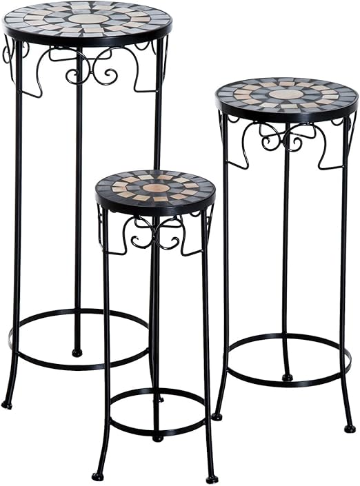 G65011 Round Mosaic Plant Stand Set Of 3 Amazon Ca Home Kitchen