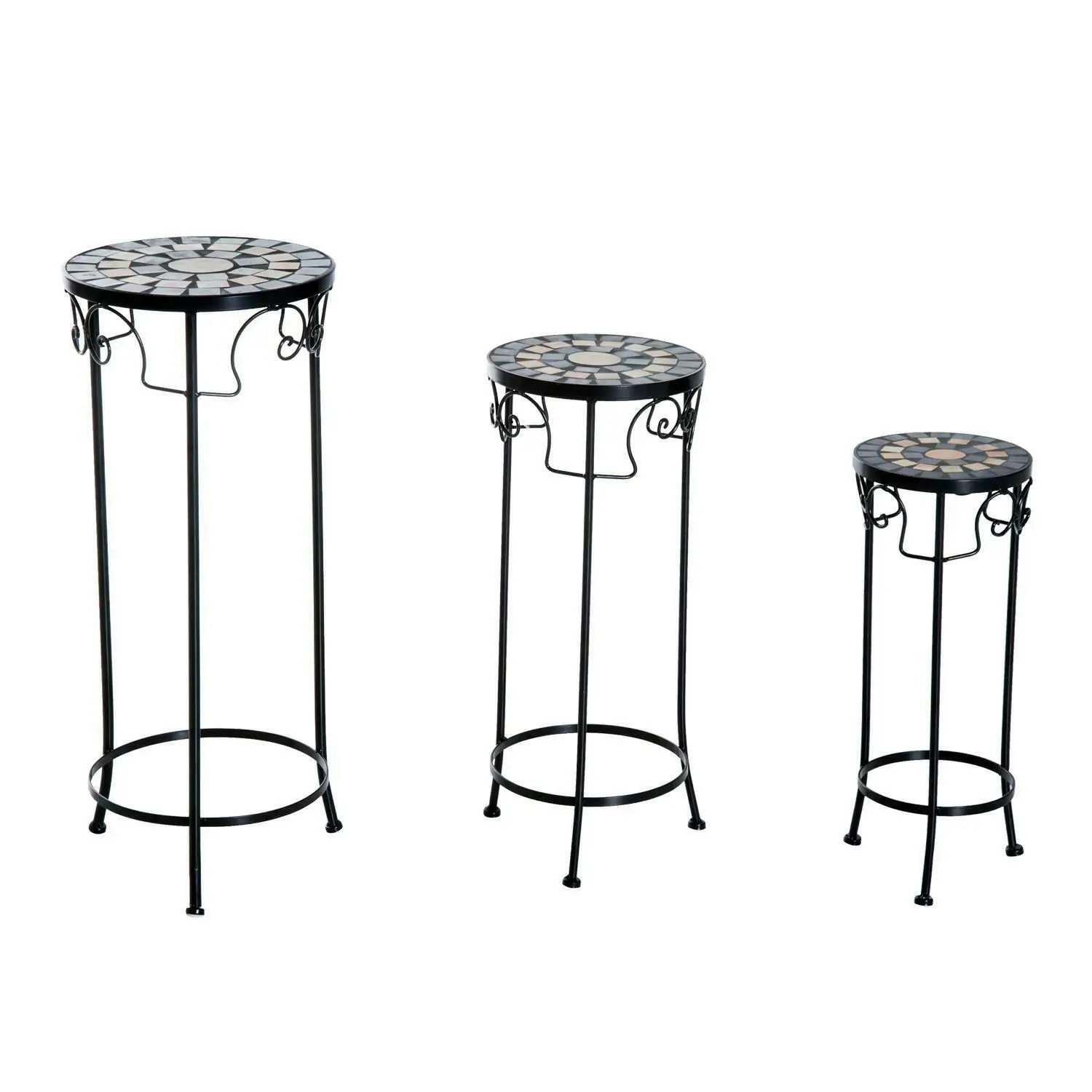 Set Of 3 Plant Stand Outdoor Round Bistro Flower Mosaic Table