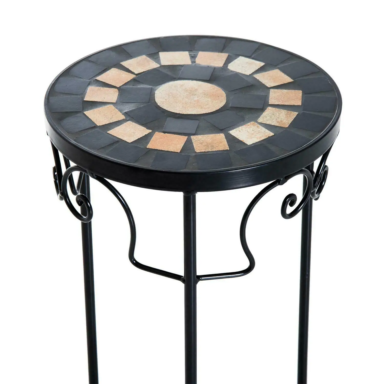 Outsunny 3 Pcs Plant Stand Table Set W Mosaic Pattern Black Iron