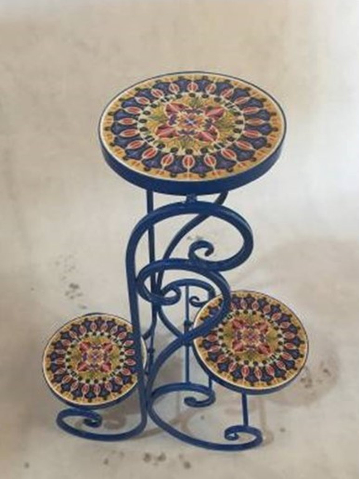Mosaic Nesting Plant Stand Set With Wrought Iron Frame