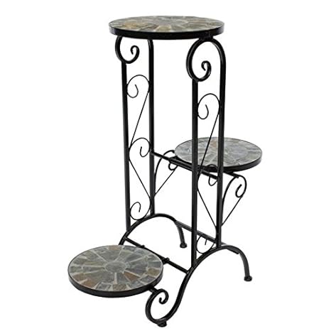 Metal And Stone Plant Stand Mosaic Gross 30 X 73cm Black Amazon Co Uk Kitchen Home