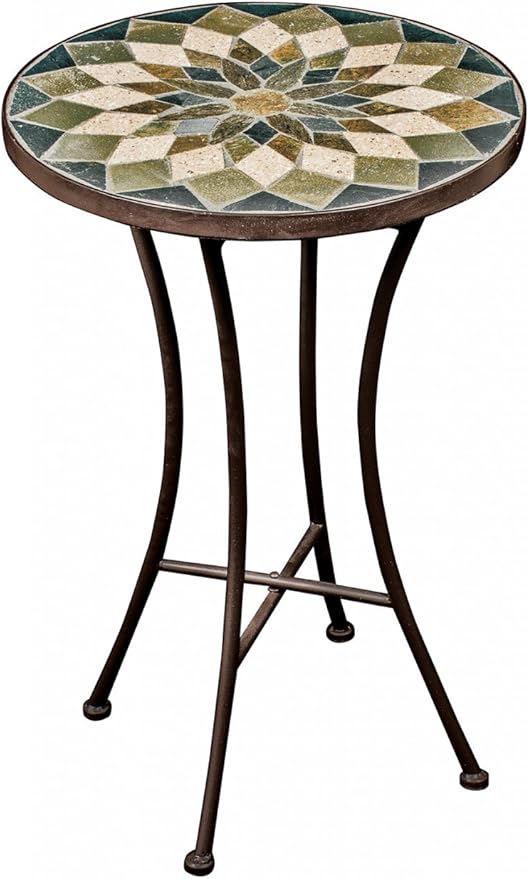 Iron Glass Round Mosaic Design Side Table Garden Outdoor Patio Flower Plant Stand Assorted Design Amazon Co Uk