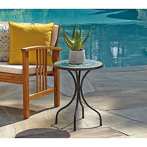S Dente Mar Mosaic Metal Outdoor Side Table Omt001 The Home Depot