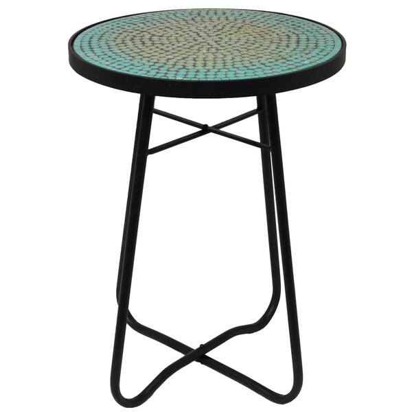 Shop Black Turquoise Metal Round Mosaic Side Table Overstock