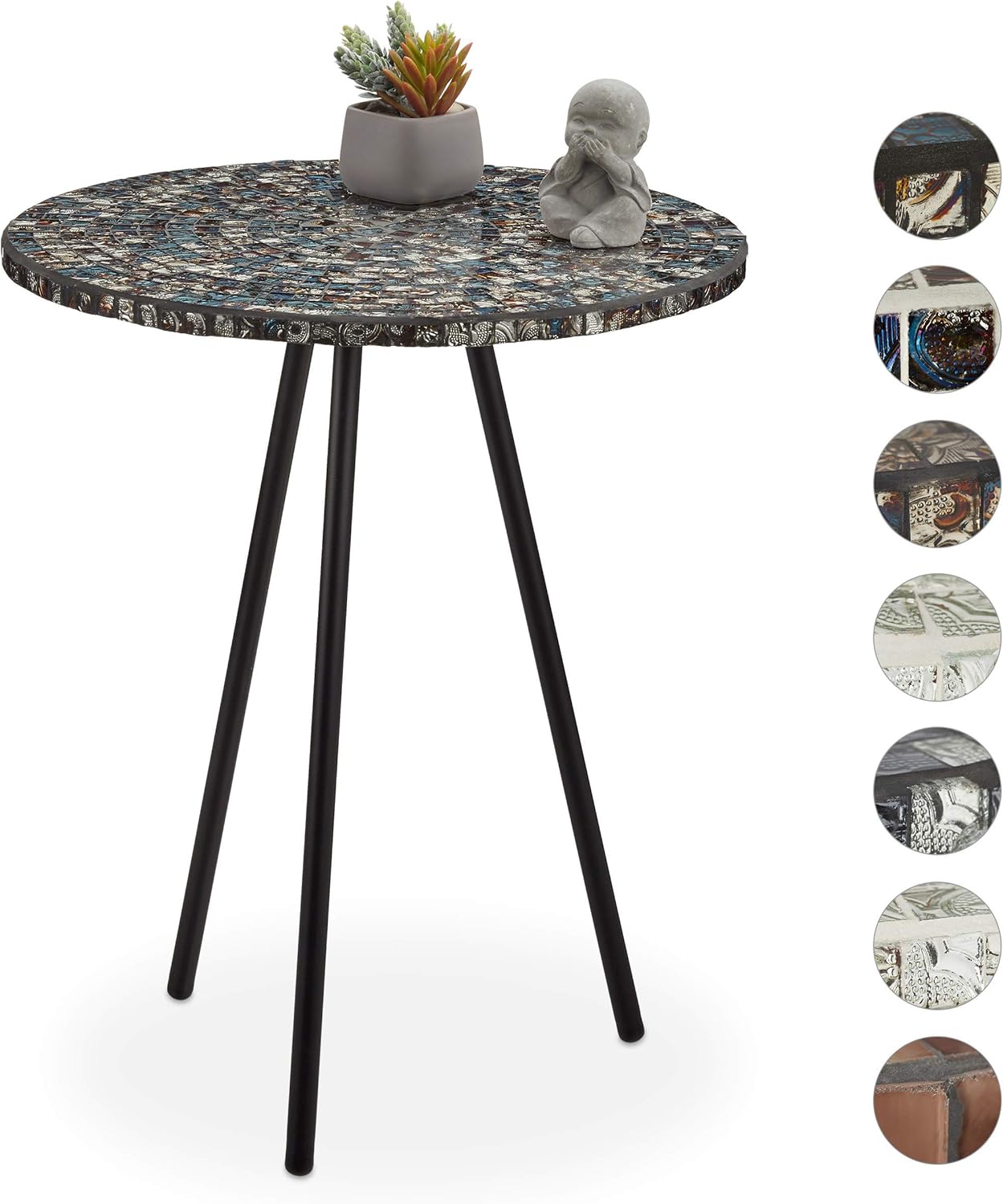 Relaxdays Mosaic Side Table Round Ornate Vanity Stand Handmade