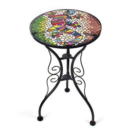 Liffy 9503 Round Small Accent Side Table Mosaic Design Patio