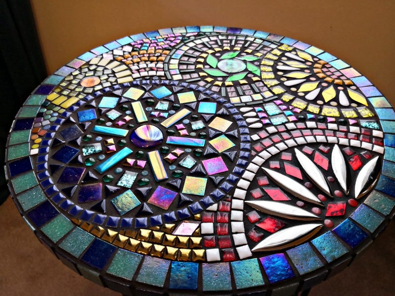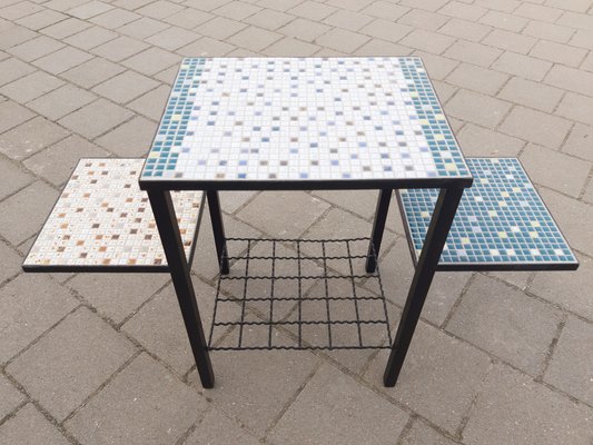 5 out of 5 stars 104 104 reviews. Luckily you can create your own mosaic table top out of an old table that you have sitting around the house. Sturdy 1960s rectangular mosaic side table plant stand mid century coffee table black white ceramic tiles brown wood vintage mcm home vintagewoodngoods. Vingli mosaic accent table 14 round side tableend table plant stand decor for patio porch beach theme balcony back deck pool indoor outdoor coffee metal cobalt glass top black irongreen garden 45 out of 5 stars 7.