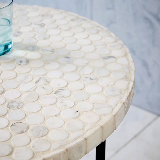 White Marble Mosaic Side Table