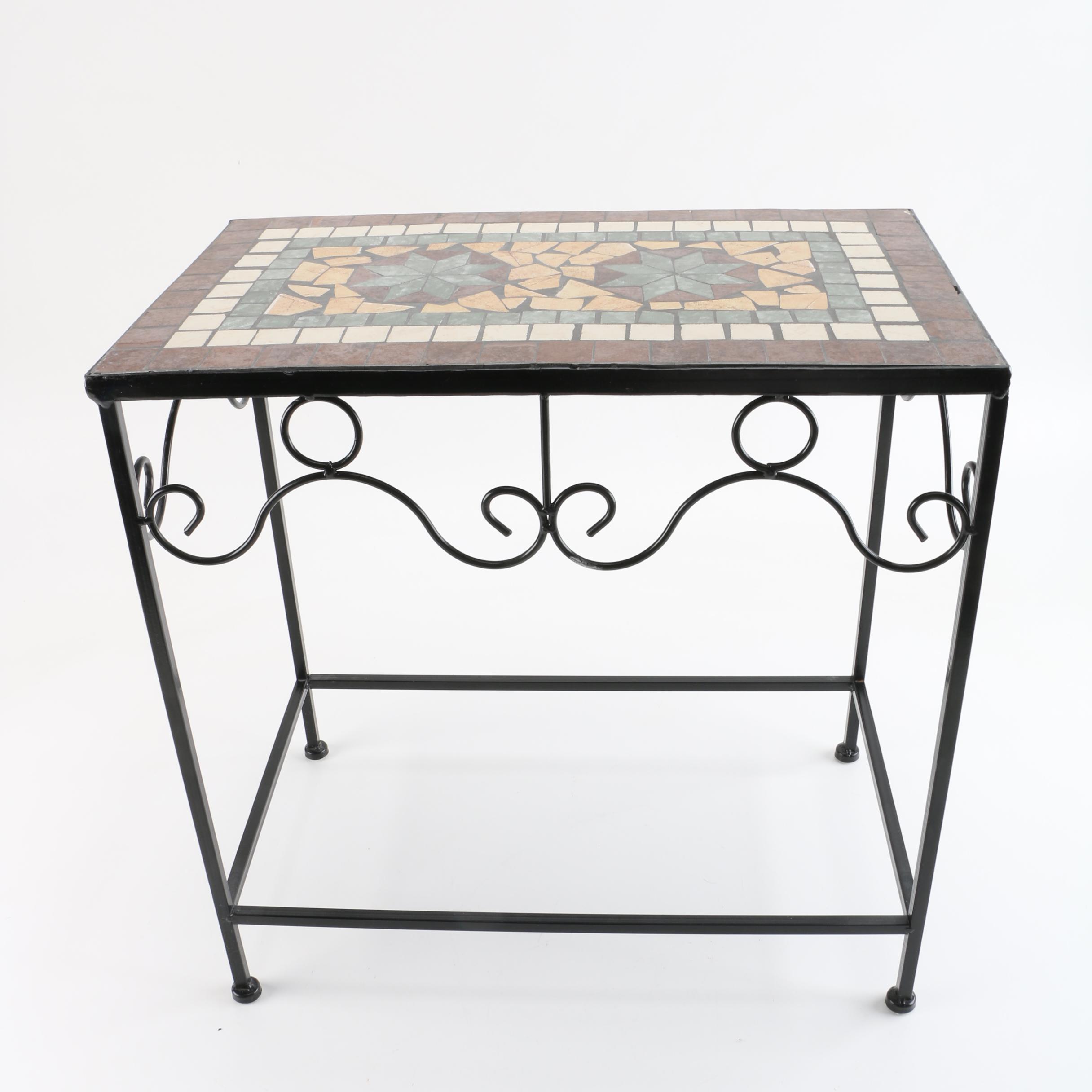 Mosaic Tile Top And Metal Side Table Ebth