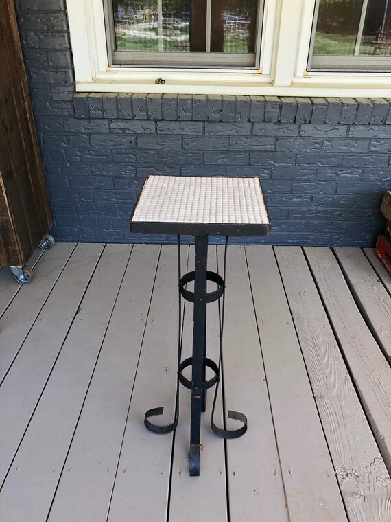 Vintage Square White Mosaic Tile Side Table Black Iron Base Etsy