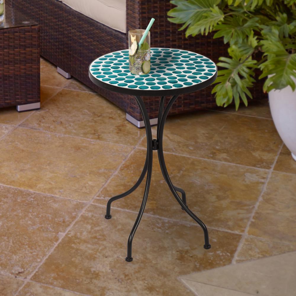 Shop Turquoise Mosaic Round Patio Side Accent Table On Sale