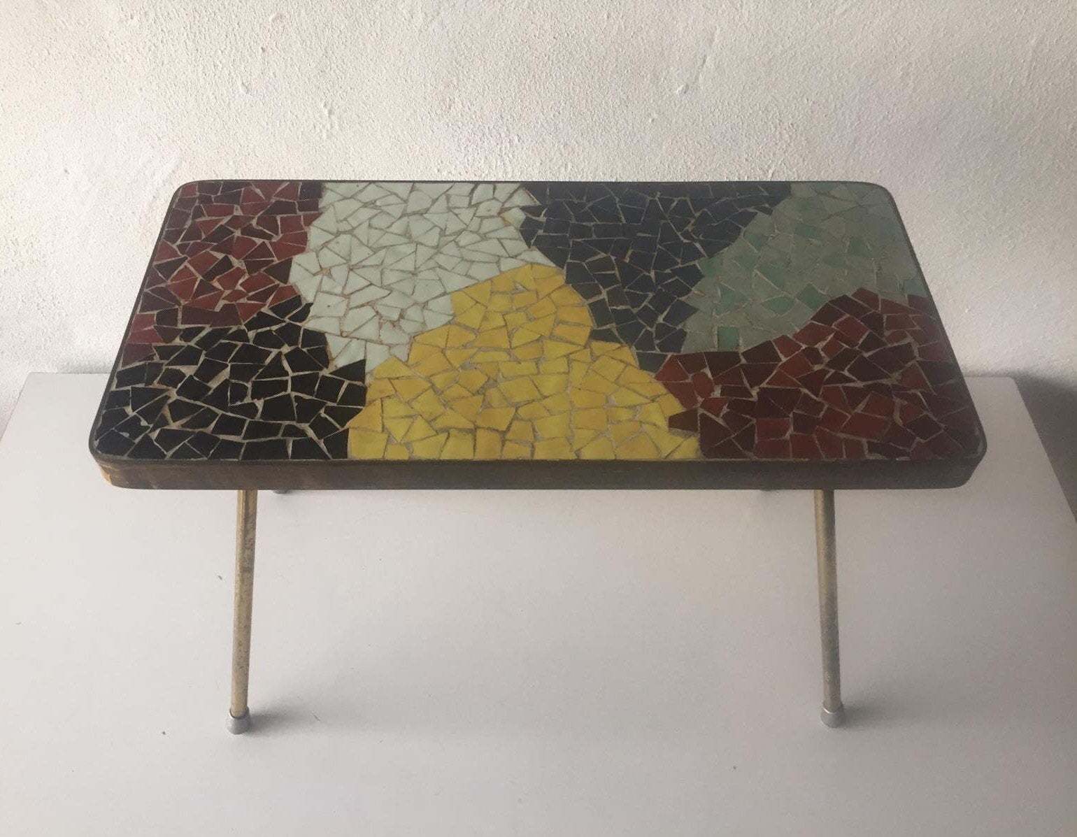 Wrought Iron Mid Century Mosaic Tile Top Accent Table Chairish