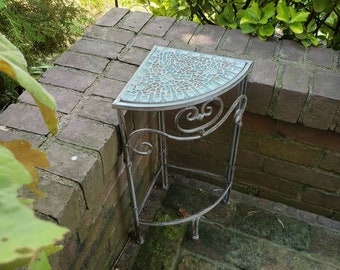 Metal Table Plant Stand With Inlaid Glass Mosaic Top Shipping