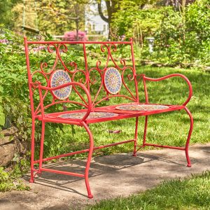 Round Mosaic Tile Top Metal Plant Stand Loveseat Vintage